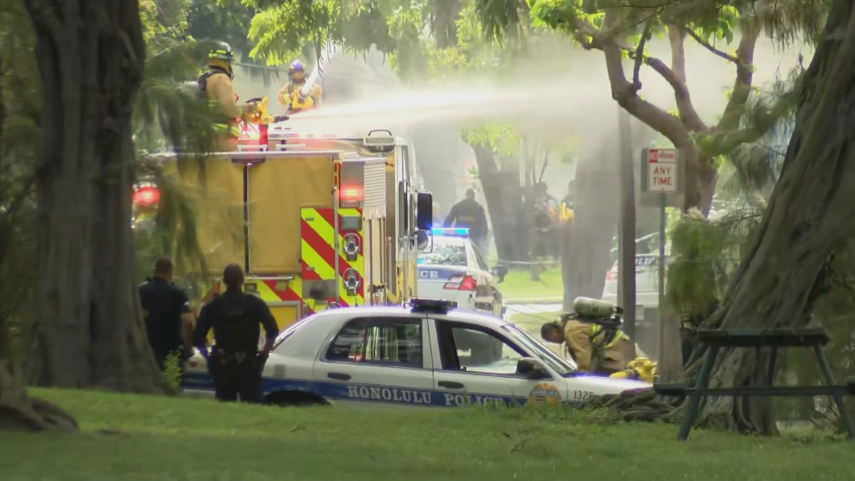El canal local KHNL reporta que el incidente habría comenzado cuando el sospechoso supuestamente apuñaló a su casero cuando estaba siendo desalojado de la vivienda.