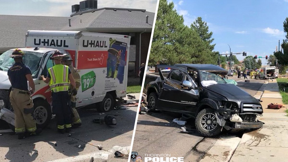 El conductor de U-Haul continuó hacia el sur por Lowell hasta West 80th Ave, donde chocó contra una camioneta Toyota. El conductor del otro vehículo, una mujer, fue trasladado a un hospital con heridas graves, dijo la policía.