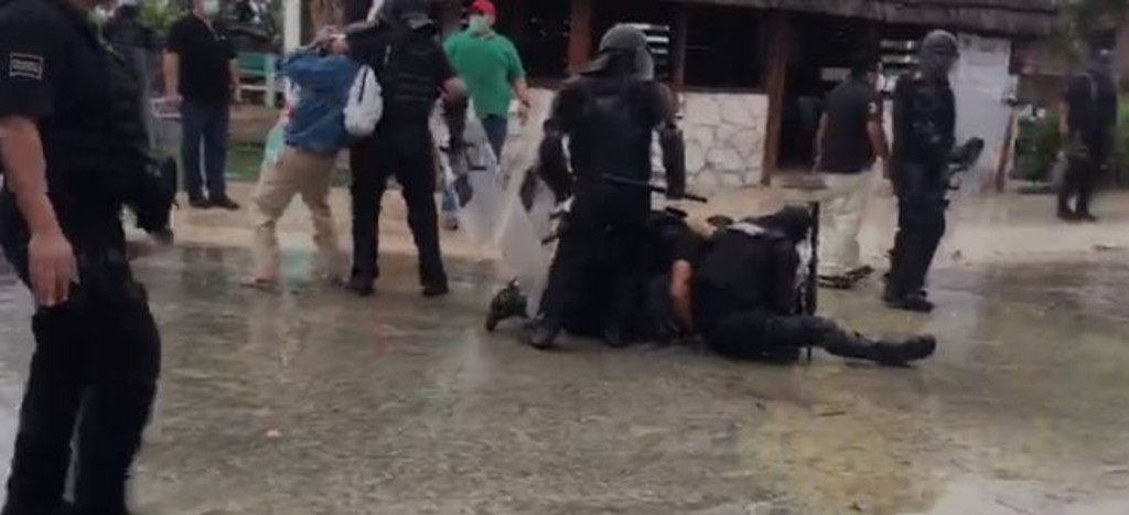 La policía de Puerto Morelos, en Quintana Roo, reprimió a un grupo de ciudadanos que se oponen a la demolición del parque principal del poblado, en la zona conocida como el Casco Antiguo.