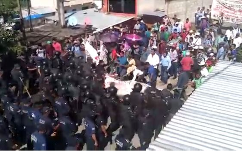 Atrás de los policías se encontraban elementos de la GN reforzando el operativo de contención de los campesinos e indígenas, quienes ante el operativo, se replegaron sin confrontarse.