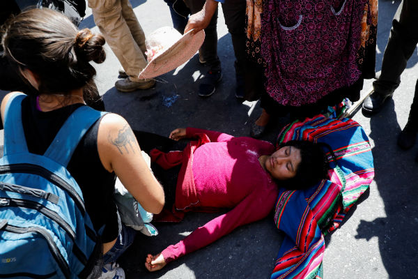 Una vez que llegaron por la avenida Mariscal Santa Cruz a la calle Ayacucho, que sube tres cuadras hasta el Palacio Nacional y la Plaza Murillo, encararon el cerco de las fuerzas armadas, a la vez que exigieron la renuncia de la presidenta transitoria.