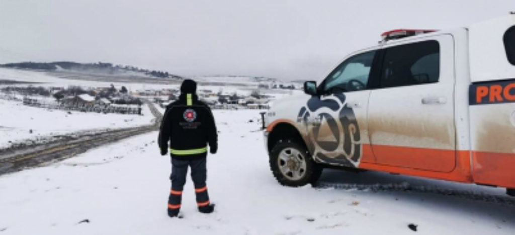 Once personas fueron rescatadas, luego de quedar atrapadas en las inmediaciones del Rancho Pino Colorado, perteneciente al municipio de Ensenada, durante las intensas nevadas registradas durante el fin de semana en las zonas montañosas de Baja California.