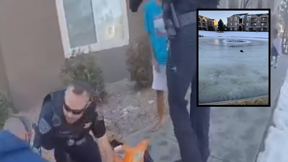 Según los agentes, el hielo se rompió y tres niños cayeron al agua. Un transeúnte que presenció el incidente, Dusti Talavera, saltó al estanque y sacó a dos niños del agua, una niña de 4 años y un niño de 11 años. También trató de sacar a una niña de 6 años, pero tuvo problemas para hacerlo.