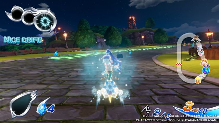 Cada personaje también tiene una habilidad especial vinculada a un medidor que se llena en el transcurso de la carrera, que se puede desatar cuando el jugador elija. Esto ayuda a que los corredores se sientan únicos entre sí, especialmente porque cada uno tiene una selección de tres karts que cambian sus estadísticas. Las imágenes del juego son lindas y las pistas están llenas de referencias, mientras que la banda sonora incluye remixes llenos de vida de muchos clásicos. Fantasía Final melodías, como “Battle on the Big Bridge”.