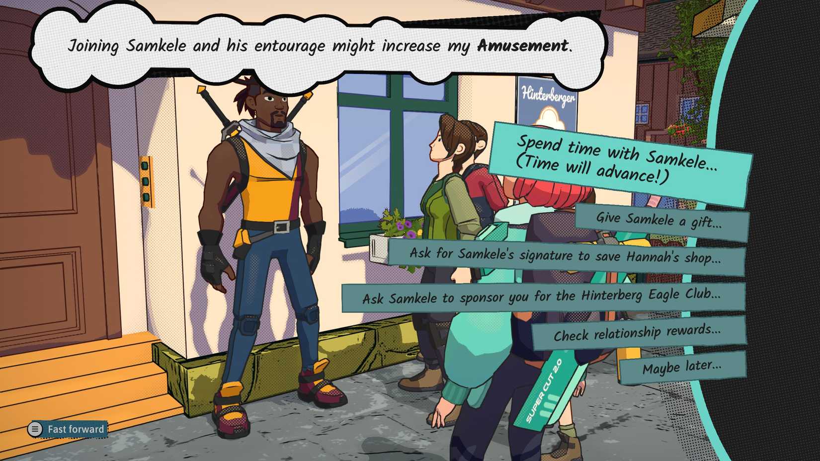 Un diario útil sigue el progreso de los jugadores y clasifica las amistades forjadas con los residentes y visitantes de Hinterberg; un personaje llamado Alex incluso hace un comentario divertido sobre lo posiblemente perturbador que es mantener un libro lleno de notas detalladas sobre otras personas. Esto habla de Mazmorras de HinterbergLa calidad general de la escritura es muy buena. y, aunque se inclina más hacia los tropos en ciertos momentos de la trama, es una narrativa dulce y amigable con un toque de sarcasmo que refuerza efectivamente las vibraciones.
