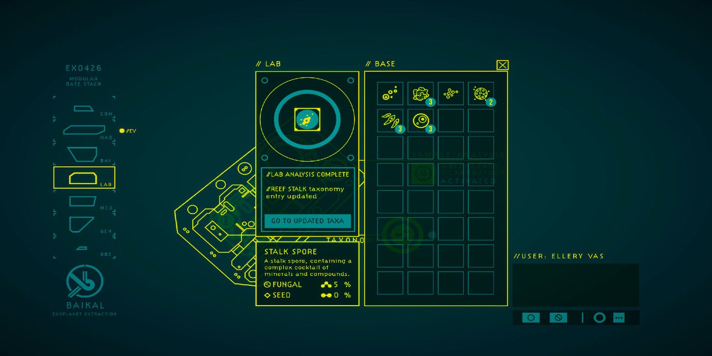 La mayoría de las interacciones reales con el mundo se reducen a observar nueva flora y fauna mientras se recolectan muestras para su análisis. También se pueden arrojar muestras al medio ambiente para ver cómo afectan al ecosistema circundante, lo que a su vez conduce a más datos nuevos. Un puñado de esporas puede atraer a una criatura que se alimenta de ellas, o una burbuja que estalla puede hacer que los hongos se retraigan y se aparten del camino. Estas actividades pacíficas ayudan a Ellery a comprender este planeta alienígena y producen un tema general de simbiosis entre especies. Por otro lado, no es estrictamente “divertido”, especialmente cuando se recauchutan áreas antiguas para avanzar en la historia o recopilar datos adicionales. El juego puede parecer una tarea ardua cuando incluso un movimiento incremental requiere tres entradas separadas, y la novedad de experimentar con muestras desaparece después de un tiempo.