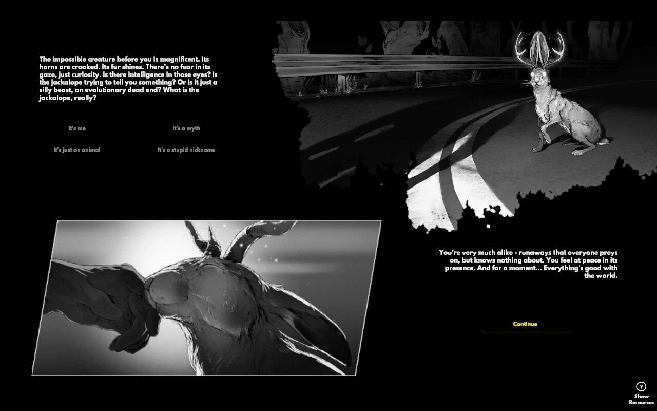 Saliendo Brilla más cuando aprovecha la idea de que hay muchos hilos variados de historia y escenarios para encontrar. Actúa de manera similar a la contracultura de Carretera 96, aunque dentro de un género muy diferente, pero con el mismo impulso de descubrir cada fragmento y conocer a todos los demás personajes del juego. Mientras tanto, el jugador puede tomar decisiones para definir su propia historia, sueños y miedos, lo que agrega un texto de diferente sabor a lo largo del juego.