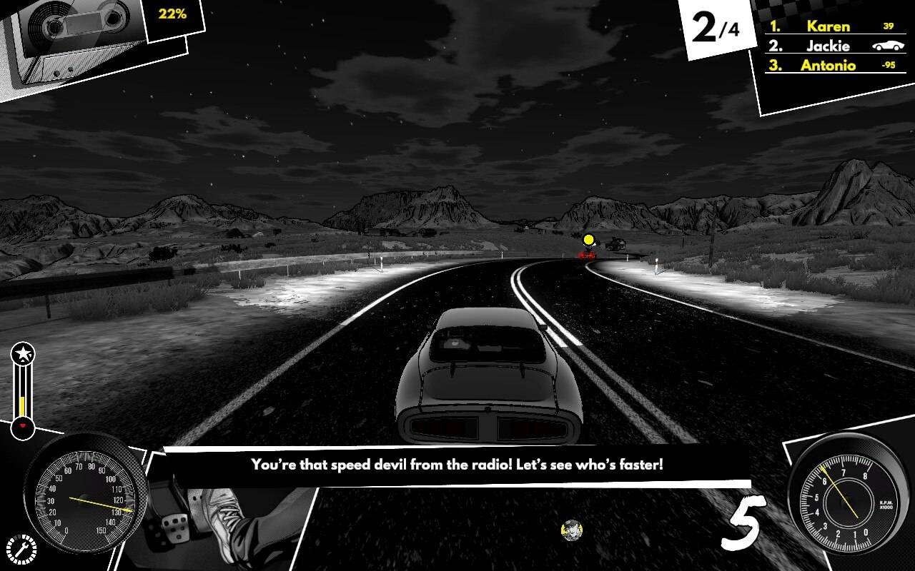 Crea una atmósfera excelente, y Serious Sim compensa la preocupación de que se sienta igual a través de otros elementos de diseño en las carreras, con ubicaciones que cambian desde pantanos hasta granjas y caminos sinuosos y montañosos. Mientras tanto, la diversidad de canciones en la radio ofrece mucha más variedad, cubriendo todo tipo de géneros clásicos para mejorar aún más el ambiente. Definitivamente da la atmósfera de un viaje por carretera, aunque sea bastante intenso la mayor parte del tiempo.