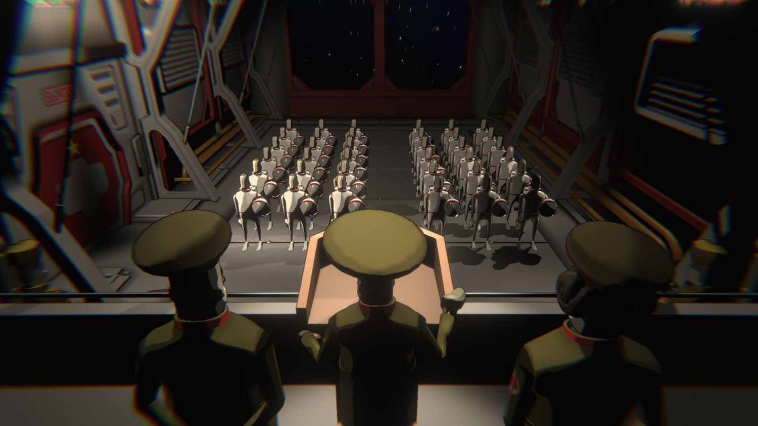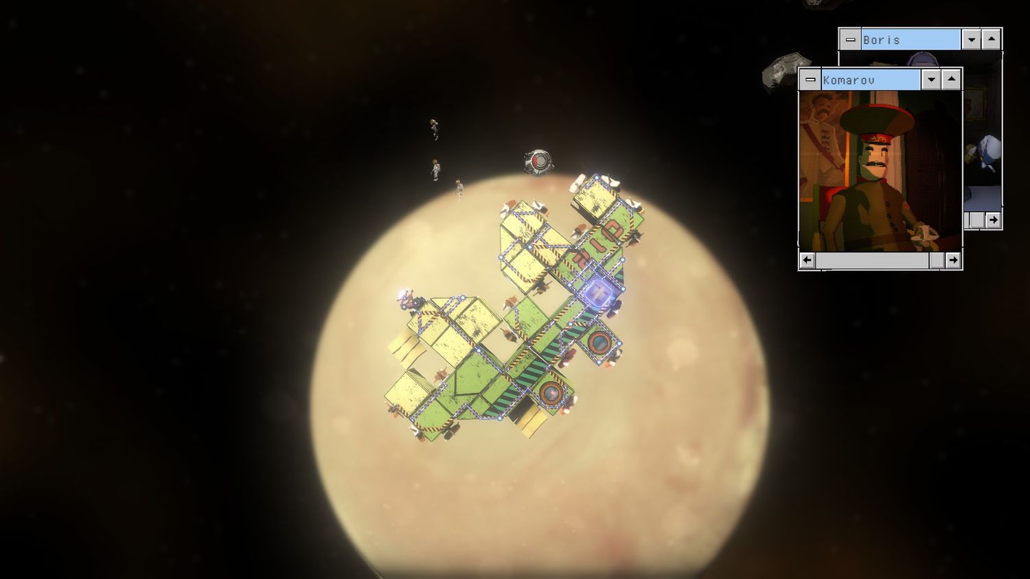 “/> A la capa de humor se suma el personaje en bloques y el diseño de la nave que yuxtapone el colorido y detallado paisaje del espacio. Entre misiones, la historia se desarrolla con escenas de oficiales, soldados y otros personajes clave que toman decisiones para el bien mayor, o simplemente para el mal, del grupo. Además de la posibilidad de intercambiar dinero por artículos para el centro de mando, una pequeña comida de patatas y vodka, o una película muda de propaganda comunista para reproducir en el “R-Box”, el juego ofrece a los jugadores mucho para entretenerse entre horas. monotonía de las misiones de asamblea.