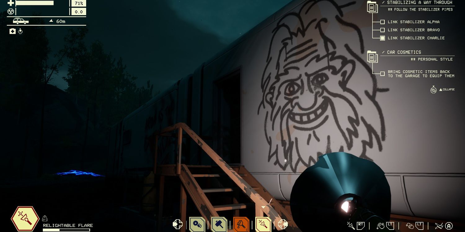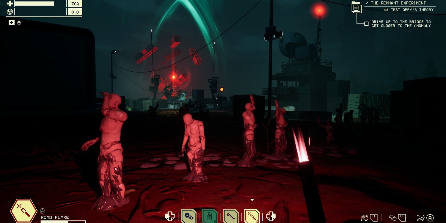 La muerte devolverá al protagonista al garaje, pero el carro estará hecho jirones y todos los objetos valiosos recolectados se perderán. Aún así, será tentador recolectar recursos hasta el último momento posible, ya que las ondas de radiación comienzan a rodear el mapa después de que se invoca un portal. Una situación cercana a pocos metros del portal incluyó una anomalía que empujó el auto casi destrozado en la dirección equivocada mientras los neumáticos estaban a punto de explotar. La salud estaba en un solo dígito debido a la tormenta, por lo que el paso de último segundo a través del portal se convirtió en una victoria satisfactoria; uno que es fácil imaginar que los futuros conductores experimenten y se enganchen en otra carrera por el noroeste del Pacífico.