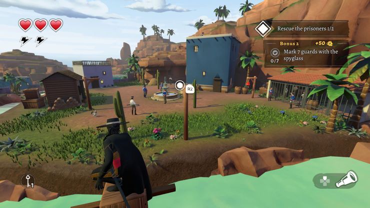 Zorro Las Crónicas ofrece la opción de rutas más sigilosas, pero esto nuevamente es bastante limitado, y siempre hay secciones en las que el jugador deberá luchar contra oleadas de enemigos para progresar. Como tal, aunque el juego ofrece al jugador diferentes lugares de entrada en el nivel similar a Sicario, simplemente no hay la flexibilidad aquí para hacer que el sigilo sea una opción viable en todo momento. Sin embargo, puede ser útil en ciertos momentos cuando se elige el nivel de dificultad más difícil, manteniéndose en lugares altos y saltando hacia abajo para derribar instantáneamente a los guardias más duros.