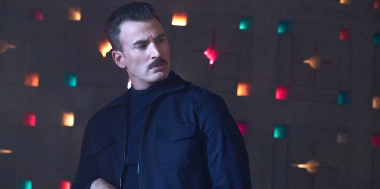 Sabemos que está destinado a estar trastornado por la frecuencia con la que la gente habla de lo trastornado que está. Es la sociopatía como una peculiaridad. Un disfraz. Un guiño demasiado trabajado y un guiño a la audiencia de que nunca habíamos visto al Capitán América así. Sin embargo, tenemos. Evans hizo el mismo truco malcriado con un efecto mucho mayor bajo la aguda dirección de Rian Johnson en 2019. Cuchillos fuera.