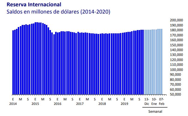 Señaló que la semana pasada se reportó un crecimiento acumulado de mil 729 millones de dólares con respecto al cierre de 2019, cuando las reservas internacionales sumaron 180 mil 877 millones de dólares, expuso.