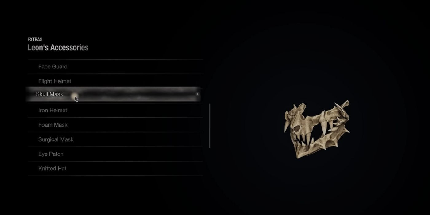 Independientemente de la dificultad elegida y de lo bien evaluados que estén los jugadores al final de la campaña, desbloquearán la Máscara de Calavera, junto con algunos otros accesorios que comparten el mismo requisito fácil. Una vez obtenido, se puede comprar en la Tienda de Contenido Extra por 1000 CP. Luego, los jugadores pueden equipar Skull Mask en Leon y comenzar otra carrera en Remake de Resident Evil 4en el que se mostrará.