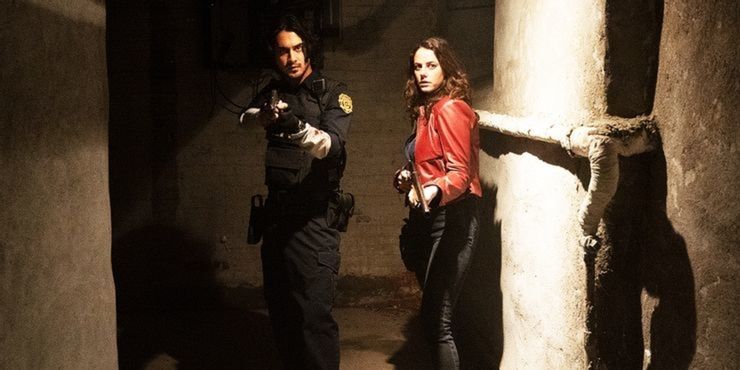 Máxima nota para el departamento de vestuario de Resident Evil: Bienvenido a Raccoon City aquí, con la icónica chaqueta de cuero roja de Claire y el chaleco de policía de Leon que combinan estrechamente con los primeros atuendos del personaje en la serie de videojuegos. La chaqueta roja de Claire fue sinónimo de las dos primeras Resident Evil juegos antes de que su chaqueta se volviera más de un tono granate, mientras que Leon tenía un chaleco de policía desbloqueable como su segunda opción de atuendo, completo con puntos de vida adicionales, a mitad de camino. Resident Evil 2. Ambos conjuntos evocan instantáneamente recuerdos de cargar a través de los pasillos de Spencer Mansion, lo que significa que se sienten perfectamente como en casa en Resident Evil: Bienvenido a Raccoon Citynarrativa.