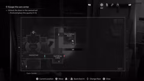 Cerca del final del segmento del Centro de atención, terminarás en el sótano de la instalación. Después de obtener el primer tapón para juntas, puede abrir una habitación en el lado oeste del área y encontrar una caja fuerte aquí.