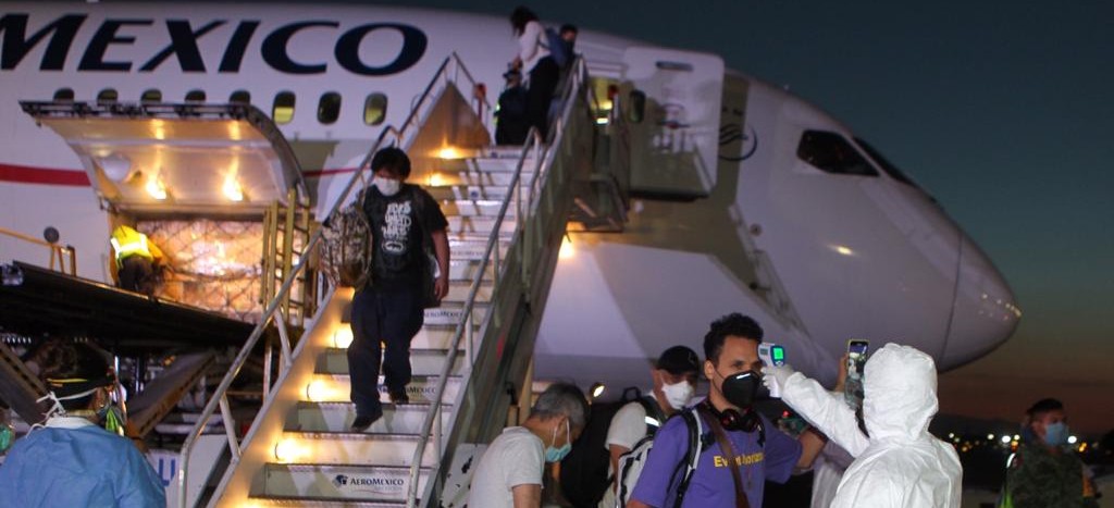 Un grupo de 54 mexicanos afectados por restricciones y cancelaciones de vuelos comerciales retornaron al país en un vuelo del puente aéreo México-China.