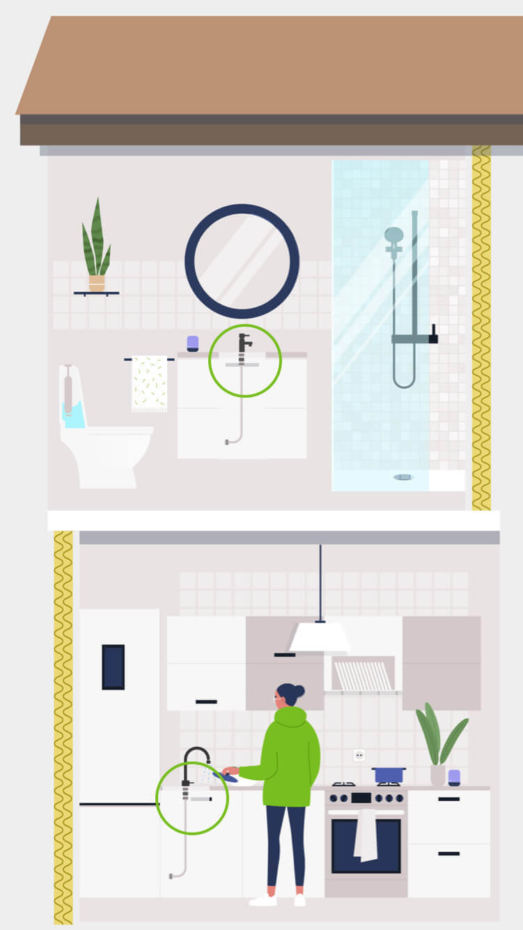 Limitadores de caudal en el latiguillo (el tubo flexible que une la tubería con el grifo) que permiten ahorrar un 30% de agua.