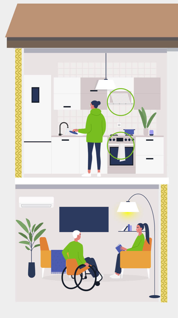 La tecnología y la innovación son grandes aliados para convertir nuestros hogares en espacios sostenibles. Gracias a la domótica, podemos controlar diferentes parámetros de la vivienda como las luces o la temperatura, y controlar electrodomésticos y otros dispositivos inteligentes como lavadoras, lavavajillas, frigoríficos o aspiradoras para un uso más eficiente. También existen otras soluciones sencillas que ayudan a reducir el consumo de agua, como grifos y cabezales de ducha, sistemas de encendido y apagado del flujo o de doble descarga del inodoro; de electricidad, como las bombillas LED; materiales aislantes que mejoren el confort térmico para reducir la demanda de energía de la vivienda; o ecológicas que no sean nocivas para el medioambiente ni para nuestra salud.