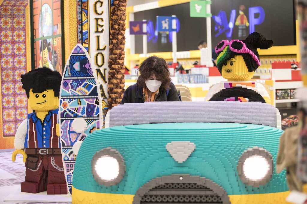 “¡Guau! ¡Eres muy inteligente! ¿Eres capaz de encontrar al hermano de la salamandra en el árbol?”, sugiere a los recién llegados una figura gigante construida con bloques de lego cuya expresión facial va cambiando por obra y gracia de una pantalla de tinta digital. El particular recepcionista, bautizado como Antoni en homenaje a Gaudí, lleva en su brazo a Drago, una salamandra inspirada en la icónica figura del Park Güell. Es una de las construcciones pensadas para subrayar la identidad barcelonesa de la tienda, que también tiene una recreación de la Sagrada Familia que, con más de 200.000 piezas y dos metros de altura, supera los 500 kilos; y venderá una reconstrucción del Camp Nou. En la tienda neoyorquina la protagonista es la Estatua de la Libertad; en la china, toma forma la leyenda de la serpiente blanca.