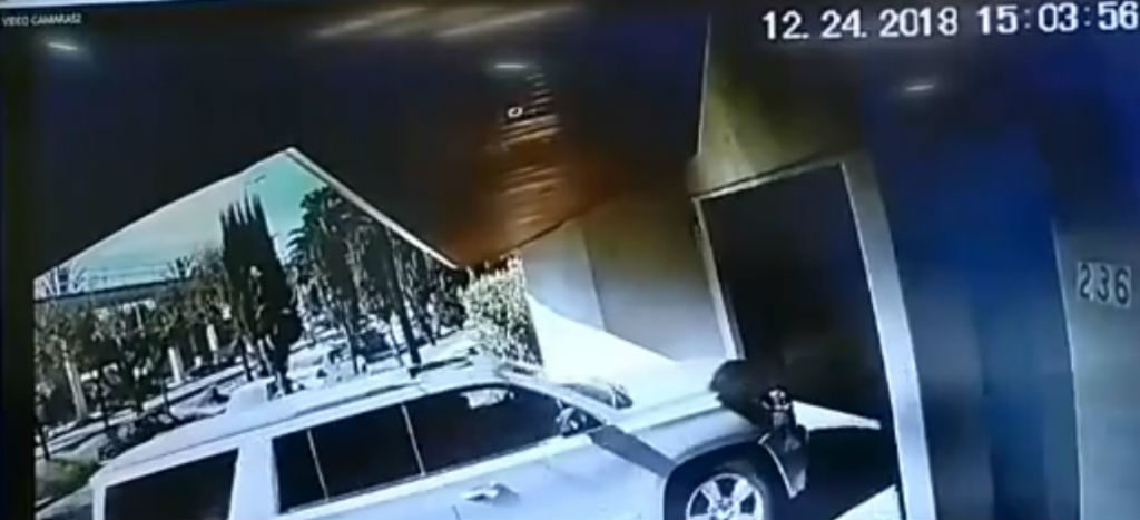 En el video se aprecia la llegada de una camioneta a las 15:00 horas con tres minutos y 47 segundos, segundos después se abre el portón eléctrico para ingresar y posteriormente cerrarse.