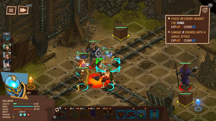 En cada situación de combate, los jugadores usarán puntos de acción para que cada miembro de su grupo se mueva o ataque a los enemigos. Los jugadores pueden imponer efectos de estado a sus enemigos, pero también pueden recibir ataques que provocan efectos de estado negativos, como dormir, quemar o sangrar. Los elementos se pueden usar para evitar o negar los efectos de estado, así como para restaurar la salud y el maná, o aumentar las estadísticas. Los atributos de un personaje se pueden aumentar con el equipo o gastando un punto de habilidad cada vez que sube de nivel. Los personajes subirán de nivel ganando experiencia en combate y completando desafíos.
