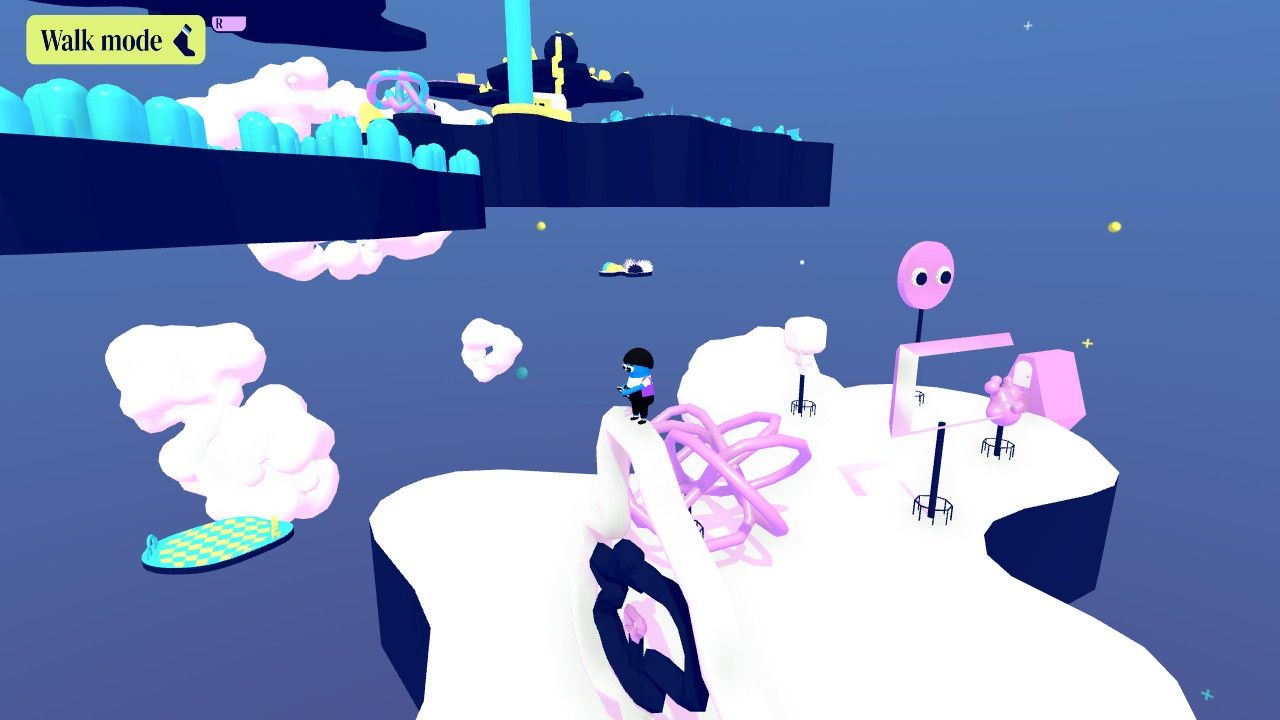 Por supuesto, tal vez ese sea el punto agresivo. Escuela de Arte Sin embargo, en sí mismo no es tan avanzado en nada, incluida su supuesta mecánica de dibujo. Un profesor de textura estática llamado Qwertz guía al personaje principal Froshmin a través de una serie de “desafíos” artísticos guiados. Al comienzo del juego, solo pueden dibujar líneas de un solo color, pero se pueden recolectar nuevos pinceles y colores a lo largo del mundo del juego, un conjunto de islas desconectadas en el espacio llenas de esculturas, manchas, trepadores y miscelánea montañosa. Complete un desafío y entre por cualquier puerta disponible, o simplemente caiga desde el costado de una isla al abismo galáctico, y Qwertz rápidamente califica el trabajo, transporta a Froshmin a otra parte del mapa y les entrega otra indicación de dibujo.