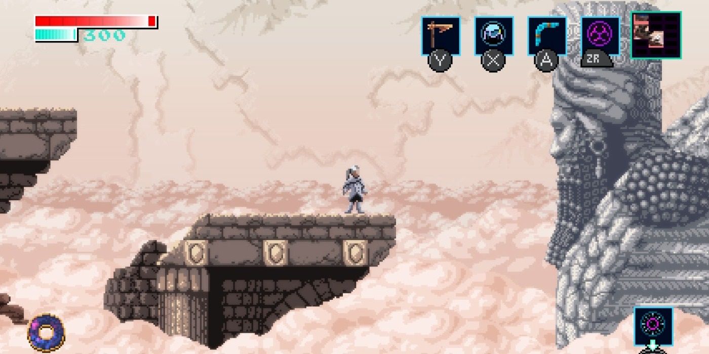 Axioma Borde 2La jugabilidad de Metroidvania resultará familiar para los fanáticos, con obstáculos y peligros ambientales que bloquean su camino hacia nuevas ubicaciones. El jugador desbloquea gradualmente nuevos poderes que le permiten explorar más mapa, además de encontrar mejoras que aumentan su capacidad de supervivencia y habilidades de combate. El giro que Axioma Borde 2 Lo que adopta el género es que a Indra pronto se le une un pequeño dron, que tiene su propio conjunto de habilidades y puede enviarse a explorar nuevas ubicaciones. El dron puede ingresar portales a un mapa mundial diferente que existe paralelo al de Indra, que tiene un estilo retro de pixel art. Algunos de los acertijos implican cambiar entre los dos mundos, lo que da como resultado algunos acertijos geniales, al tiempo que le da al jugador mucho espacio para experimentar.