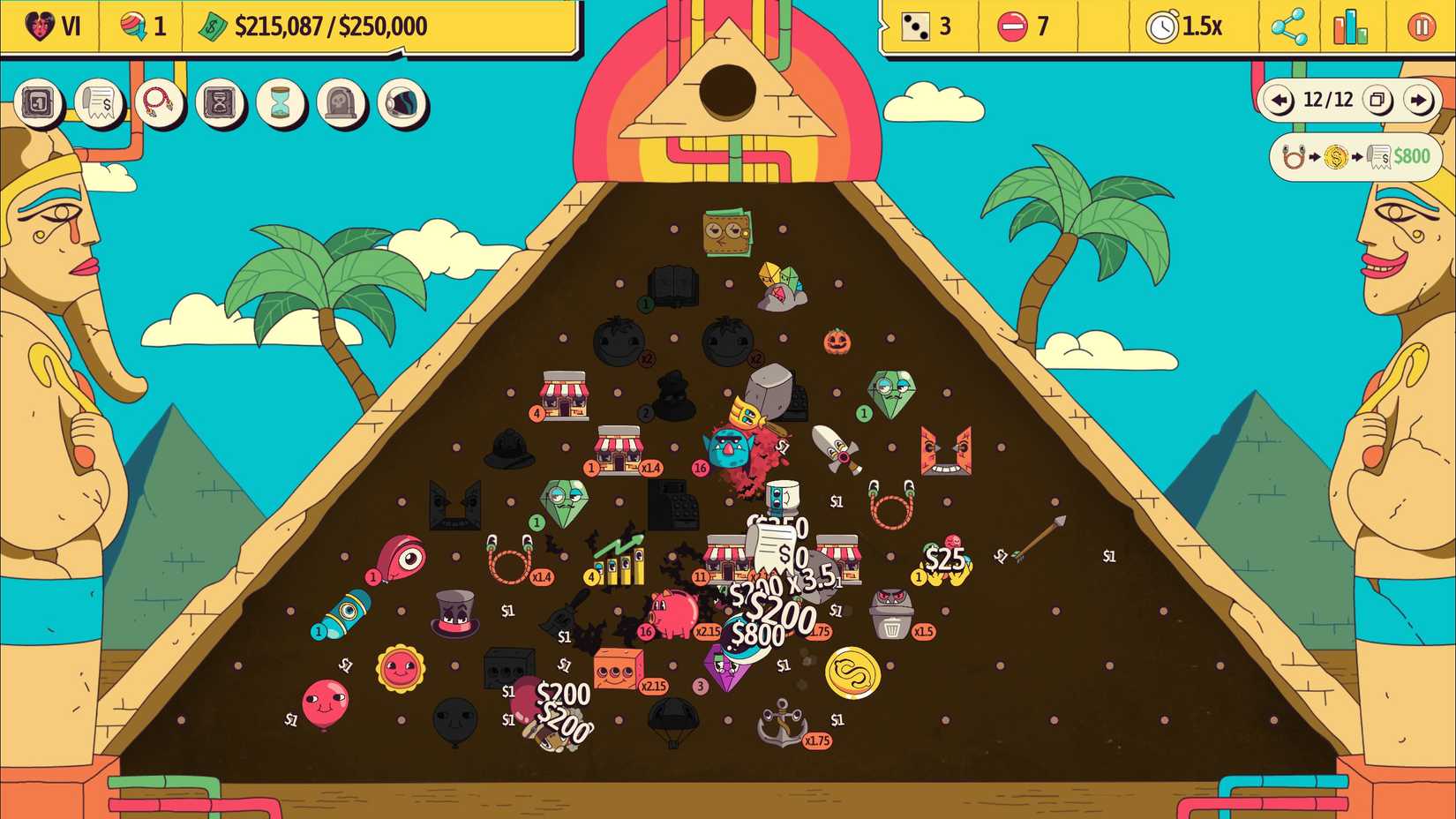 Aún así, cualquiera que disfrute inventando máquinas generadoras de puntajes debería hacer clic con balonarioy abarca tantos géneros accesibles que seguramente habrá un gancho viable al que los fanáticos del roguelite se aferrarán. Las ejecuciones fallidas a menudo resultan en una lección ingeniosa o una sinergia desconocida, por lo que la mayoría de los intentos parecen tiempo bien empleado, incluso después de desbloquear hasta el último elemento y bendición. balonario presenta una contención inteligente del orden y el caos que lo hace destacar del resto, incluso si me quedo mayoritariamente con la Pirámide.