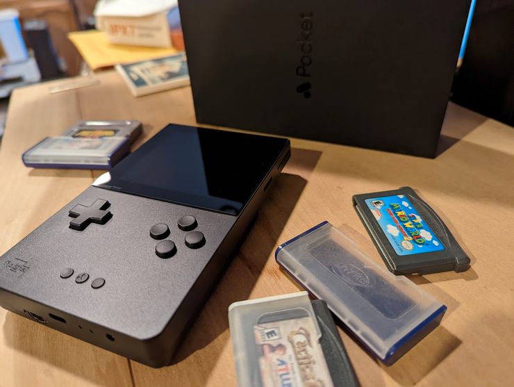 Fuera de la caja, Pocket reproducirá cualquier juego de Game Boy, Game Boy Color o Game Boy Advance de forma nativa. Estos se conectan a una ranura en la parte posterior de la unidad que descansa cómodamente entre los botones laterales. Una vibrante pantalla Gorilla Glass de 3.5 pulgadas con una resolución de 1600×1440 a 615ppi es la estrella del espectáculo, pero la variedad de botones y puertos (incluido un puerto USB-C para carga y conectividad, y un puerto de enlace del estilo original de Game Boy) y funcionalidad) completan el resto muy bien. Hay cuatro botones frontales además del teclado direccional, sustitutos de Start y Select, y un botón con el logotipo de Analogue para volver a la pantalla de inicio del sistema. Todos menos el botón de inicio están desmarcados, lo que permite la reconfiguración a través del menú del sistema.
