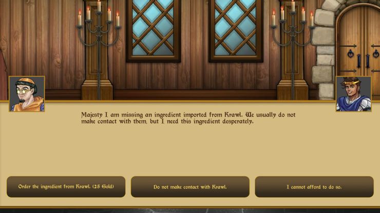 Las cosas se complican un poco más cuando se trata de obtener recursos y oro. Cada edificio que se construye en Conquistador 940 d.C. requiere una cierta cantidad de oro y recursos como madera o metal para su construcción. Los jugadores pueden trabajar para construir los edificios que proporcionan recursos u oro, pero hacerlo requiere mucho tiempo y paciencia. La forma de ganar realmente cosas es comerciando con los reinos cercanos. Los jugadores tendrán que mirar los precios de mercado en cada reino para decidir qué pueden comprar barato en un lugar y luego revender con ganancias en otro lugar.