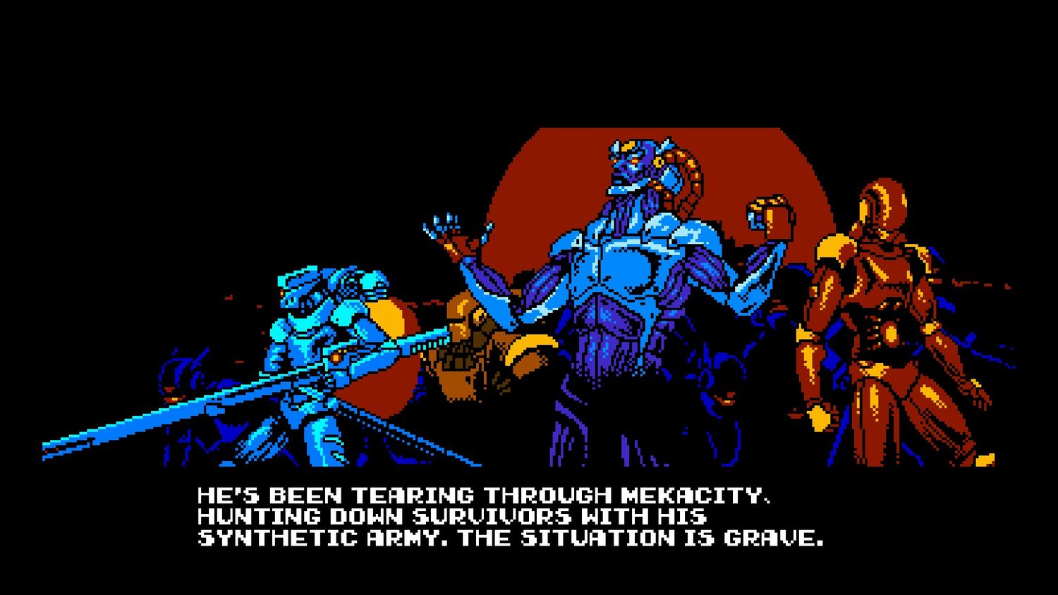 Sombra cibernética También es una maravilla visual. La mayor parte se ve mejor de lo que los juegos similares de NES podrían haber logrado con razón en esa época, pero el movimiento de píxeles perfectos y las ilustraciones brillantes lo hacen sentir similar a los mejores ejemplos de esa época de todos modos. Además, el Sombra cibernética La banda sonora podría ser una de las mayores fortalezas del juego, una secuencia contagiosa de bucles chiptune dramáticos y de mal humor que inspiran a los jugadores a través de los encuentros más difíciles y los reintentos contra los jefes.