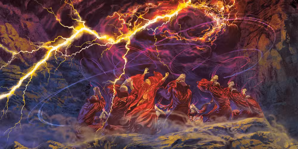 Pasando por alto un capítulo sobre equipos, que tiene algunas ilustraciones bonitas y valores de elementos, pero que parece que podría estar fácilmente en un libro orientado a DM, el último de Héroes de FaerûnLas principales revelaciones de es su cobertura de la magia. La nueva opción Circle Magic proporciona una forma mecánica para que los lanzadores de hechizos combinen sus poderes.apoyando a un lanzador principal en el lanzamiento de hechizos cargados.
