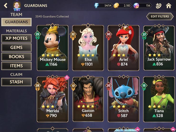 Las microtransacciones están incluidas en espejo de disney, pero no son necesarios para construir un equipo poderoso. La compra de orbes obviamente acelerará el proceso, pero parte de la diversión es obtener suministros, subir de nivel a los Guardianes y completar logros e hitos para ganar orbes y cristales gratis. También se pueden fabricar cristales que recompensan los suministros, y existe una pequeña posibilidad de recibir un Guardián de ellos. Los Guardianes duplicados se convierten en fragmentos que pueden aumentar la calificación de estrellas de un personaje cuando se recolectan suficientes. A diferencia de otros juegos móviles recientes, como diablo inmortalLas microtransacciones frustrantes no dictan quién domina las tablas de clasificación de la Alianza.