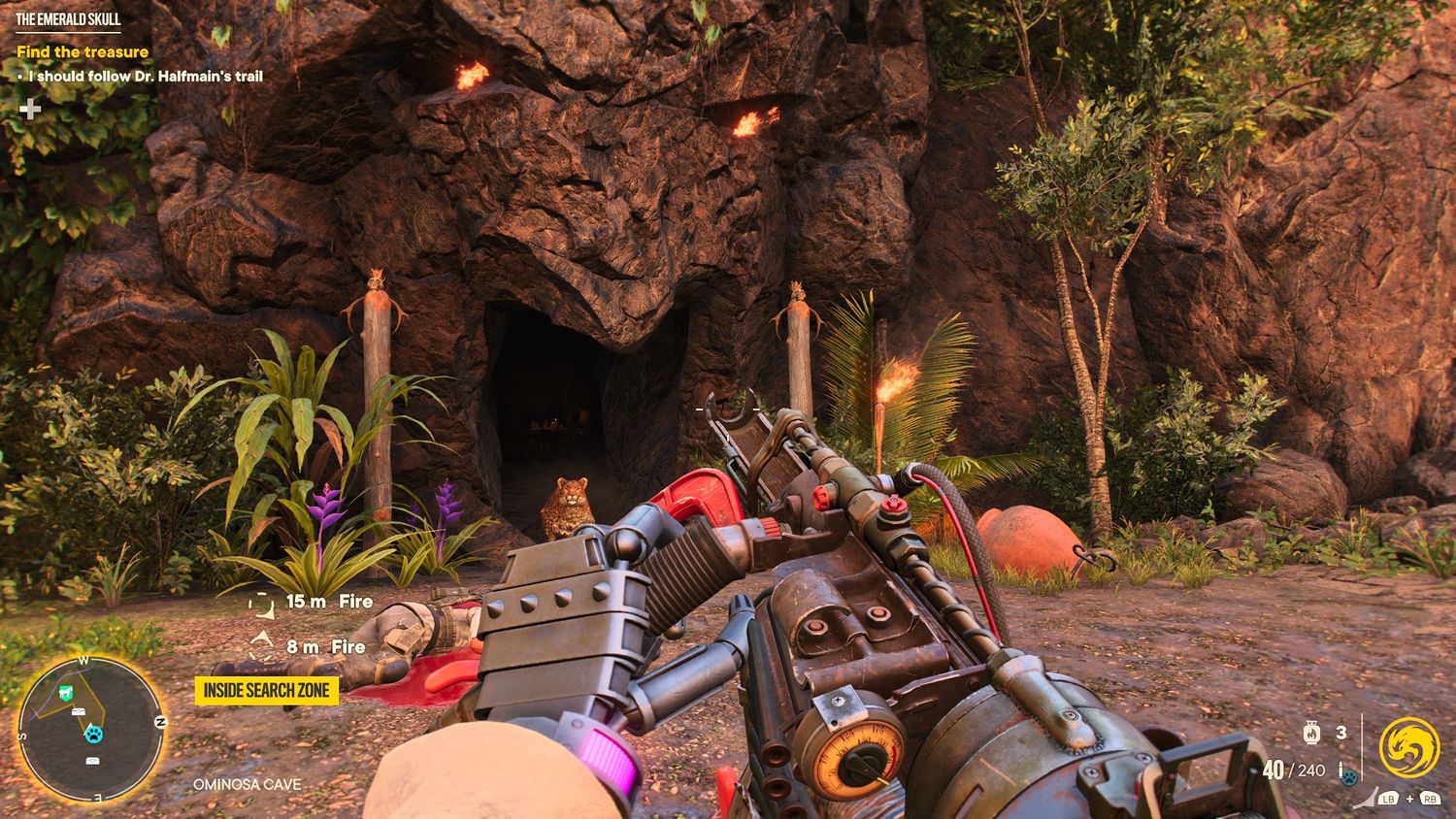 Incluso con Muy lejos 6Con la amplia selección de armas, el mundo de Yara es otro más en una larga lista de pruebas de resistencia de Ubisoft. Con tres regiones completamente equipadas que bien podrían ser capítulos de un juego episódico, el gran alcance de Muy lejos 6La oferta de es sin duda impresionante. Cualquiera que busque un juego que le brinde meses de actividades ha encontrado lo que buscaba, pero cualquiera que busque un desafío completista probablemente encontrará más frustración que diversión. Múltiples niveles de puestos de avanzada brindan más dosis de sigilo satisfactorio, y completar cualquiera de ellos dirigirá a Dani hacia otros eventos en el área circundante. Es un patrón de juego que todavía funciona, pero sólo para aquellos que no están agotados por docenas de horas de este patrón exacto en entradas anteriores.