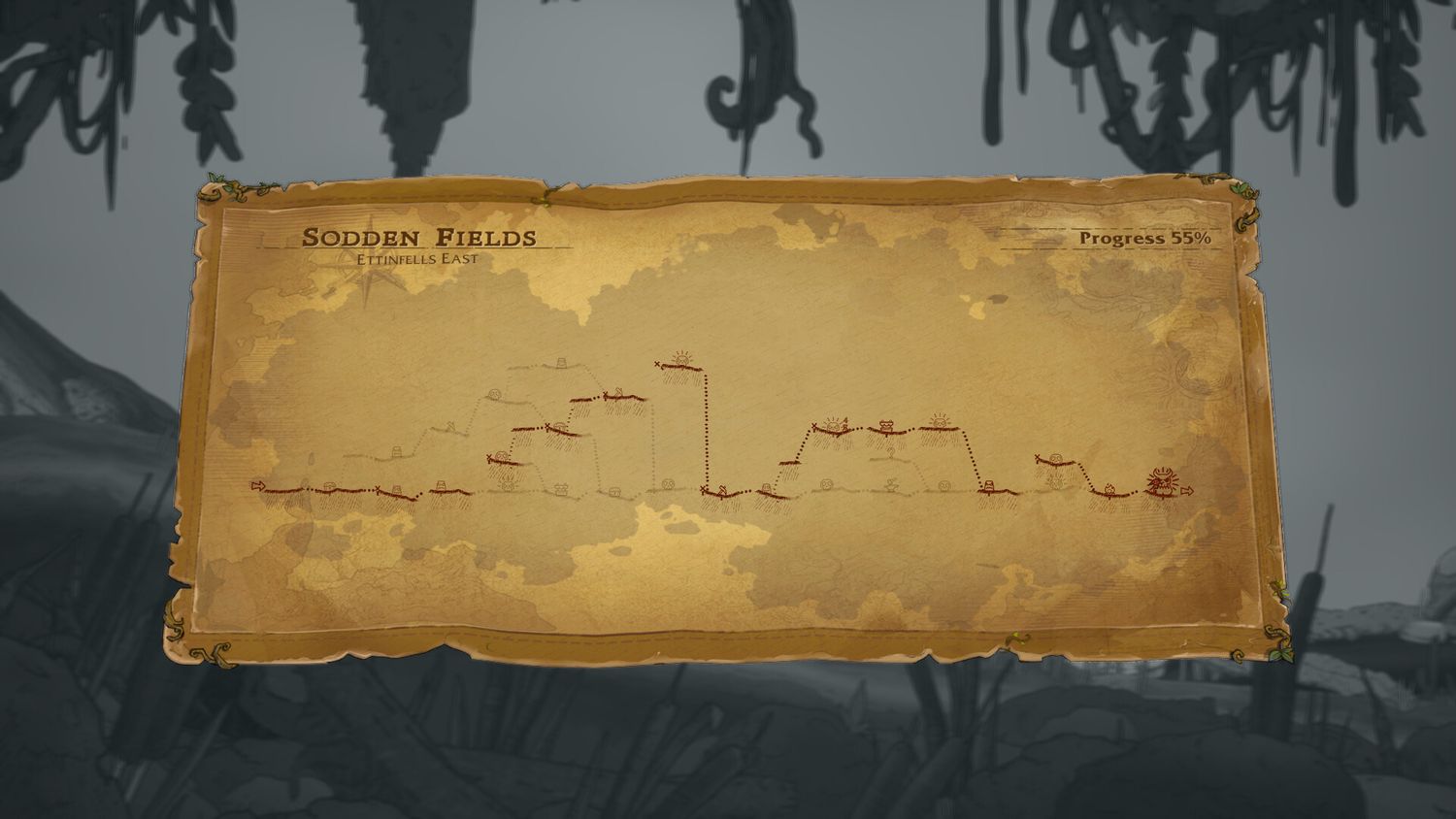 Cadaviaje en Piedra duende se genera procedimentalmente, con una gran cantidad de ubicaciones diferentes que se pueden encontrar cada vez. Similar a otros roguelites como Mata la aguja, hay un mapa de caminos divergentes a seguir, por lo que no se puede investigar todo. Hay lugares útiles como gurús de batalla para mejorar habilidades, santuarios que reparten bendiciones y duendes cautivos que se pueden reclutar (una excelente manera de descubrir rasgos), así como otros malos y ambiguos, como peleas, versiones malditas de santuarios que pueden corromper. personajes, y casi siempre una batalla de jefe esperando al final.