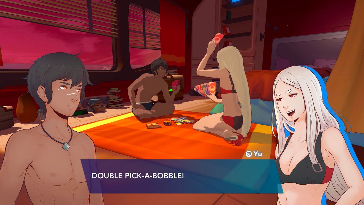 Esa relación es el quid del juego y la parte más satisfactoria del mismo. El diálogo auténtico, natural e íntimamente identificable capta la dinámica entre dos veinteañeros enamorados, ya sea que estén abrazándose después de preparar la cena o hablando juguetonamente sobre un juego de cartas. Refugio aborda temas como la dedicación, el sexo y las parejas en los videojuegos con inteligencia emocional y madurez, todo ello entretejido en una historia reflexiva sobre el rechazo del status quo y el intento de forjarse una vida diferente. Es realmente sorprendente la frecuencia con la que la escritura provoca una sonrisa o toca las fibras del corazón, y es difícil no enamorarse de Yu y Kay a medida que el jugador los conoce y reconstruye sus historias personales.