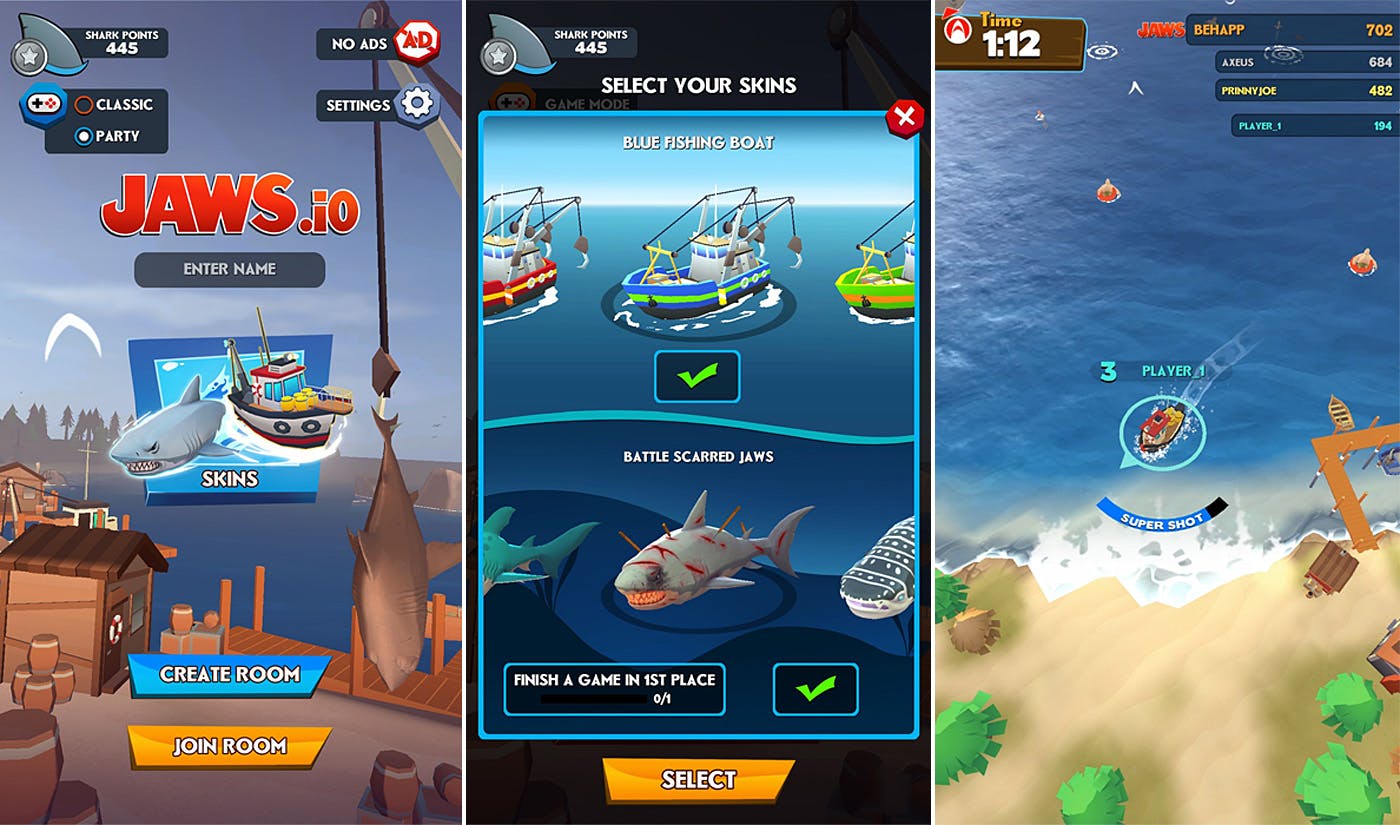 La jugabilidad de Mandíbulas.io Es bastante simplista. Con un dedo, el jugador mueve el bote, o tiburón, a lo que quiere recoger y la clave es intentar recoger todo (o comerlo todo, si está en modo de tiburón). El juego se lleva a cabo en una serie de partidos por tiempo limitado, con puntuaciones en una tabla de clasificación que permite a los jugadores comparar sus puntuaciones con amigos. Los jugadores también pueden elegir varias pieles para sus barcos y tiburones. Al igual que el juego, los gráficos son simples, lo que significa que la sangre y la sangre están atenuadas, lo que podría ser decepcionante para Mandíbulas aficionados. Sin embargo, la música es tan familiar. Mandíbulas música que todos conocen y aman, y eso hace que el título sea un poco más divertido de tocar.