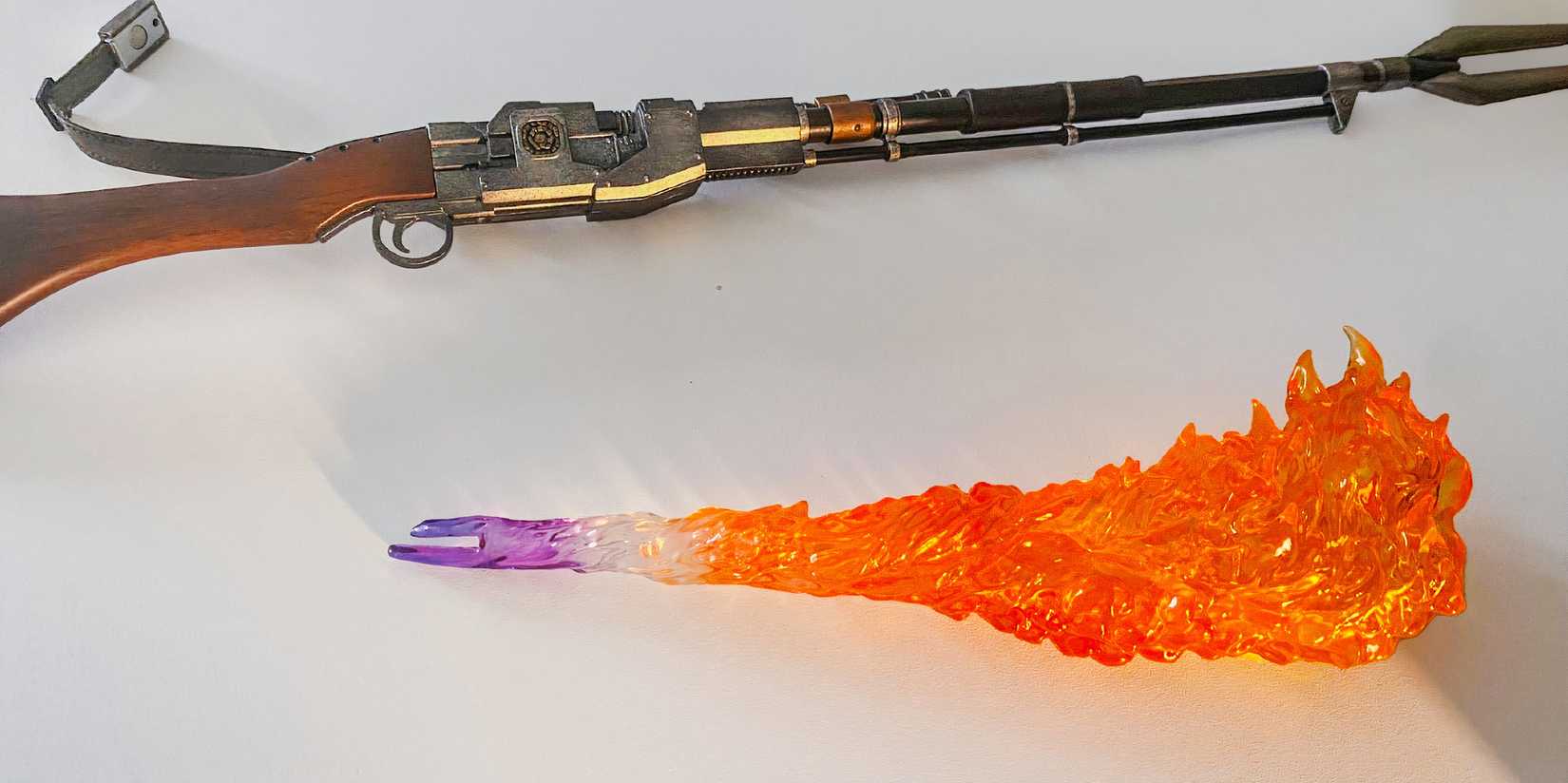 Los efectos del lanzallamas son notoriamente difíciles de lograr con objetos coleccionables. Hot Toys toma una ruta popular, con plástico semitransparente moldeado; Tiene una calidad lo suficientemente alta como para verse bien, aunque no es del todo perfecto. Sin embargo, funciona muy bien con cierta iluminación, por lo que algunos coleccionistas seguramente querrán aprovechar esta exhibición. La garra es aparentemente un accesorio bastante común en algunas figuras de Hot Toys, pero, por supuesto, funciona perfectamente para recrear el debut de Din en El mandaloriano temporada 1.