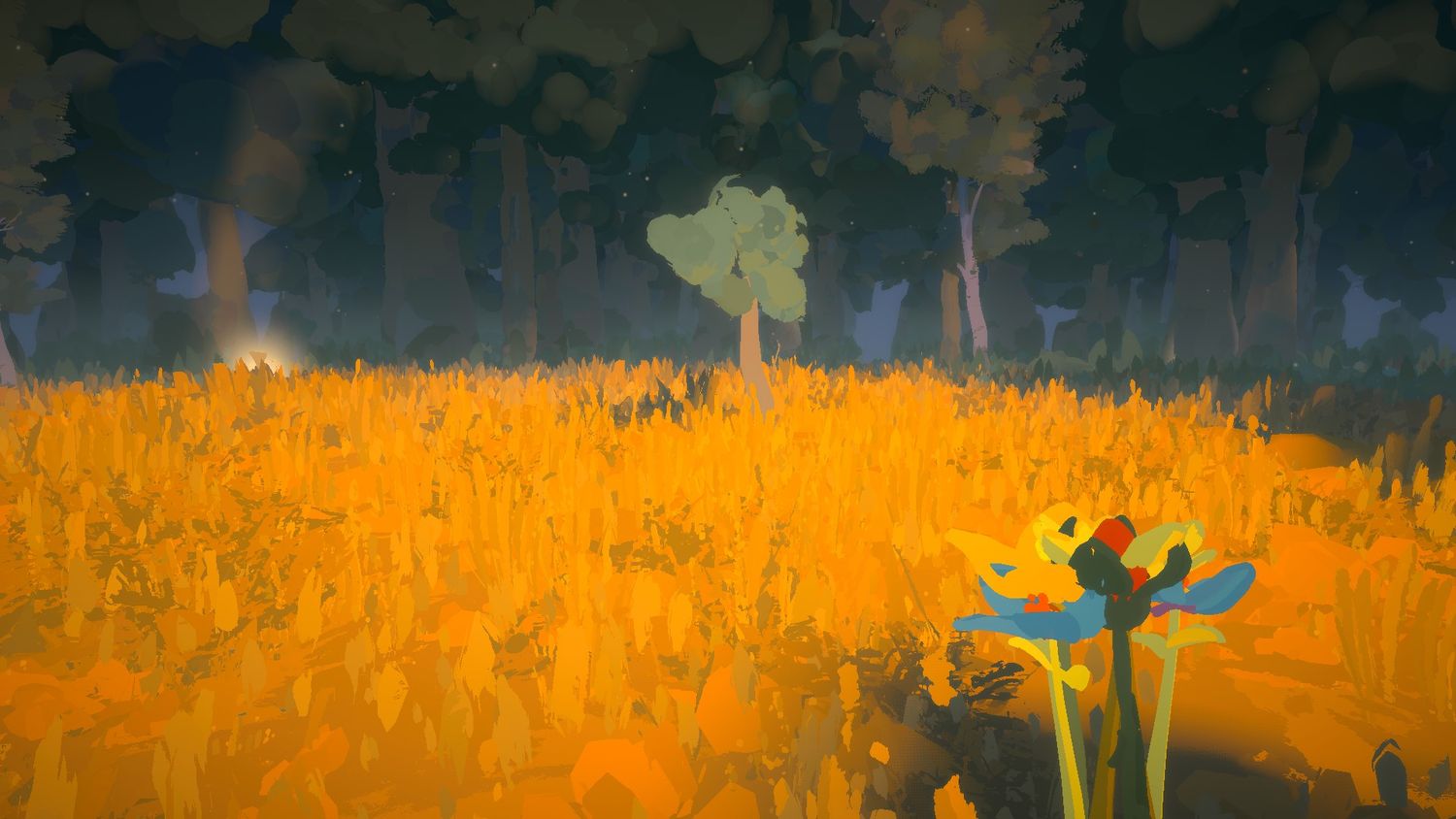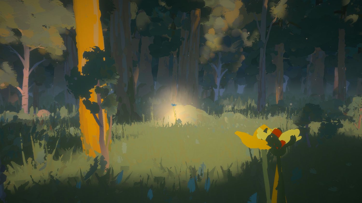 Luz de sol ciertamente encaja a la perfección en este frente. El título es realmente hermoso a la vista, con la afirmación de influencia expresionista de Krillbite clara con su bosque abstracto pintado a mano y destacadas zonas de color en todas partes. Crea un bosque extraño y fluido por el que el jugador puede caminar, lleno de verdes exuberantes y puntos de luz de flores que recuerdan a juegos independientes pioneros como Proteo.