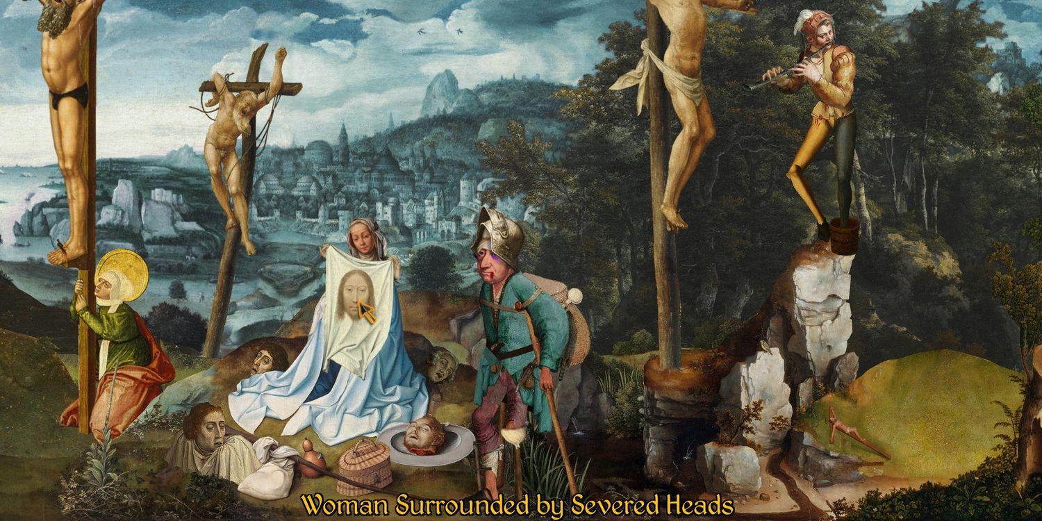 Es imposible no encontrar el entorno de La Procesión al Calvario hermoso, ya que está lleno de algunas de las pinturas más conocidas de la historia de la humanidad. El desarrollador, Joe Richardson (creador del aclamado por la crítica Cuatro últimas cosas), básicamente cortó y pegó personas de estas pinturas para usarlas como personajes en su juego. Esto significa que todos los movimientos y acciones de los personajes son erráticos y completamente bidimensionales. Esto se suma al humor, ya que el protagonista corre por el entorno de una manera intencionalmente antinatural.
