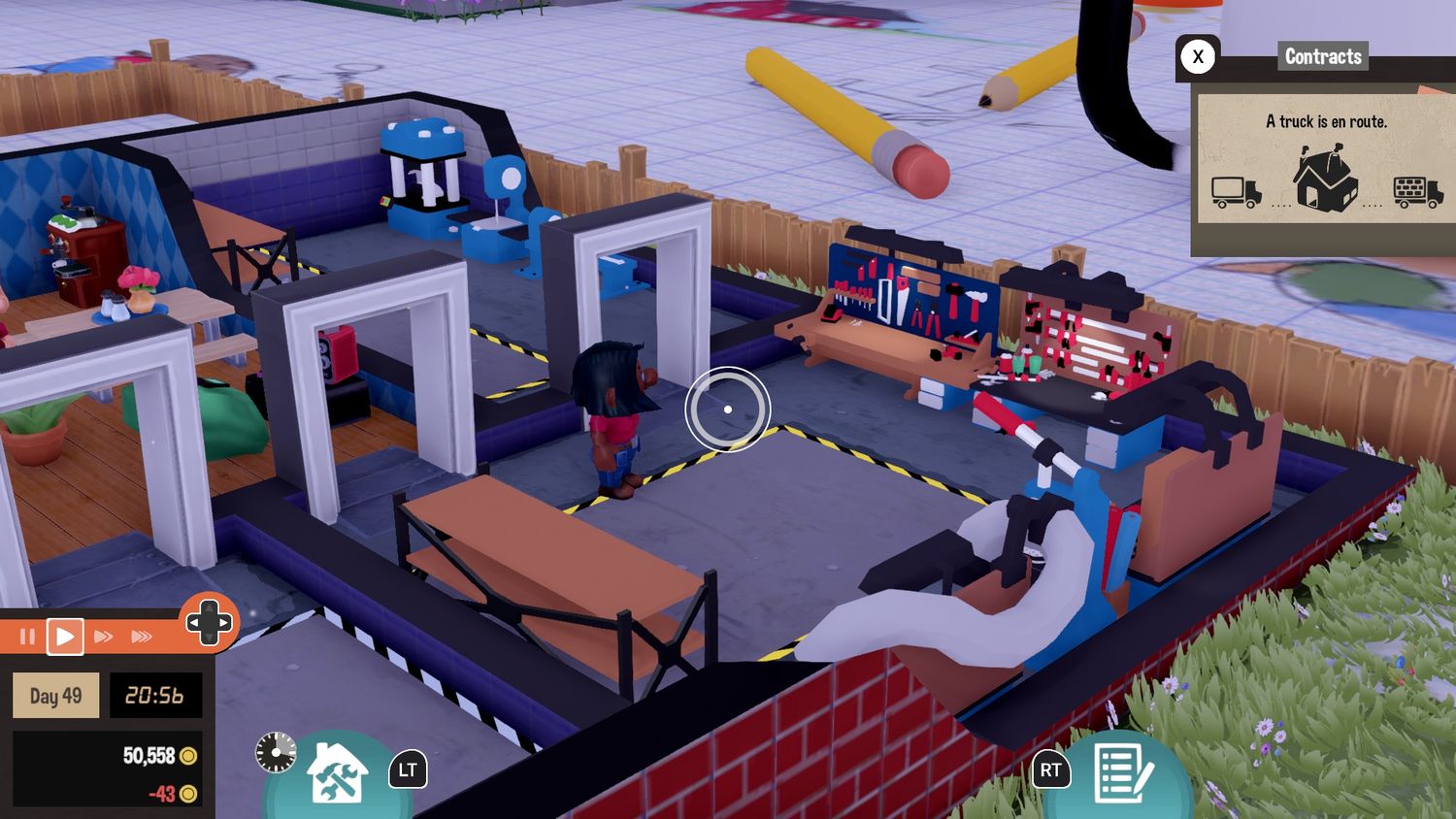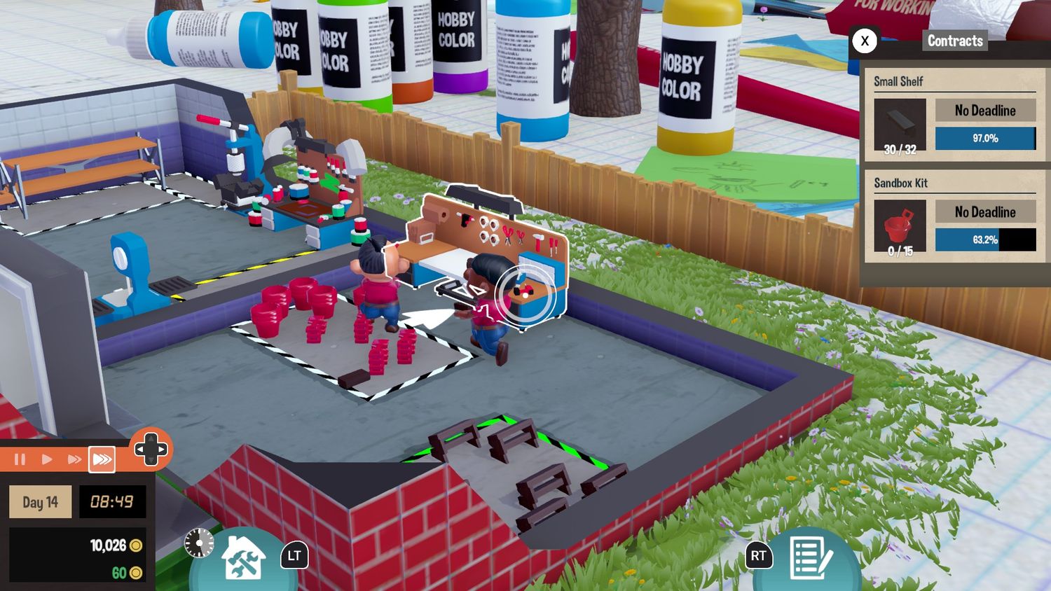 El tutorial se lleva a cabo en la fábrica que actuará como taller del jugador, lo cual tiene sentido ya que le permite saltar inmediatamente a la acción y ponerse manos a la obra de inmediato. El primer trabajo abarca los conceptos básicos de comprar estaciones de trabajo y poner a los empleados a trabajar, pero Pequeño gran taller rápidamente se vuelve más complejo que eso. Para que todo funcione sin problemas, es necesario gestionar la distribución de la fábrica, proporcionar espacio de almacenamiento adecuado y mantener contentos a los trabajadores.