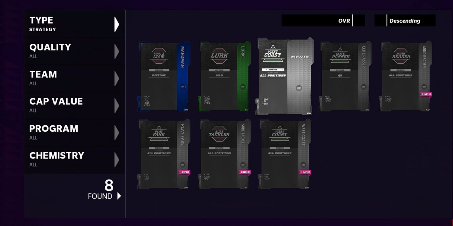 “/> Los jugadores ya no simplemente eligen si quieren ejecutar la Cobertura 3 en lugar de la Cobertura 2 como en Enloquecer 21y, en cambio, pueden elaborar estrategias sobre cómo quieren abordar cada juego. Luego pueden elegir objetivos para cada entrenador que se ajusten a la estrategia, como centrarse en una estrategia de carrera interna y establecer una meta para el coordinador ofensivo de correr más de 150 yardas. Si un jugador se estaba concentrando en pases profundos y toma una ventaja temprana, puede cambiar a un enfoque de carrera interna para administrar el reloj en la segunda mitad, o si planeaba defenderse contra rutas cortas pero sigue quemándose profundamente, puede ajustar su estrategia para quitarle el balón largo. Todavía no es un sistema complejo, pero es una mejora bienvenida.