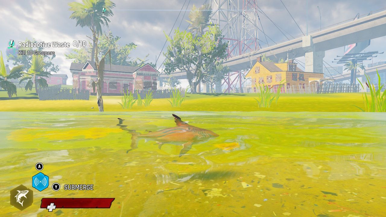 En lo que respecta a la jugabilidad y la historia, nada ha cambiado. Come-hombres en Nintendo Switch. Aparte de parches y correcciones de errores, esta es la misma experiencia que se lanzó el año pasado en otras plataformas. Si bien inicialmente es divertido nadar a través de las distintas regiones del pantano y masticar peces y turistas por igual, las misiones se vuelven repetitivas rápidamente. No solo eso, sino que los encuentros con enemigos más grandes pueden ser una prueba de paciencia gracias a los combates en los que machacar botones suele ser la mejor manera de avanzar. Para aquellos que disfrutan corriendo por el mundo de los mayores. gran robo Auto juegos sin involucrarse realmente con la historia, probablemente habrá mucha diversión con Come-hombrespero el producto completo nunca se presenta como una experiencia completa.