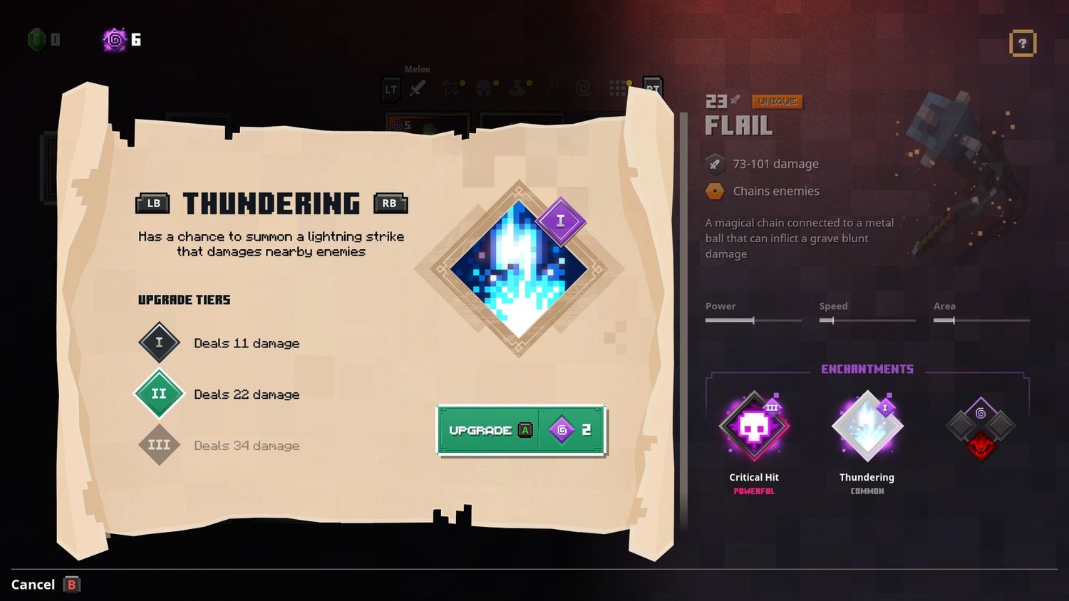 Este es fácilmente el sistema más profundo del juego, aunque no es nada complicado. Uno puede crear su construcción saqueando elementos específicos con encantamientos sinérgicos. Además de eso, el jugador recibe tres elementos de un solo uso que alteran su juego. Desde cañas de pescar que atraen a los enemigos hasta chuletas de cordero que llaman a un lobo amistoso para que sirva al lado del jugador; Los artículos, aunque únicos, lamentablemente no son demasiado variados. Solo una hora después de jugar un juego ya corto, aunque rejugable, y la mayoría de los elementos básicos ya se habrán visto. Para un juego que, una vez más, hace alarde de un estilo artístico bastante simple, los recursos no deberían ser demasiado difíciles de crear. Esto significa que la cantidad de armas y armaduras debe ser una prioridad máxima, especialmente para un ARPG donde el jugador obtiene constantemente actualizaciones e intercambia sus elementos sobre la marcha.
