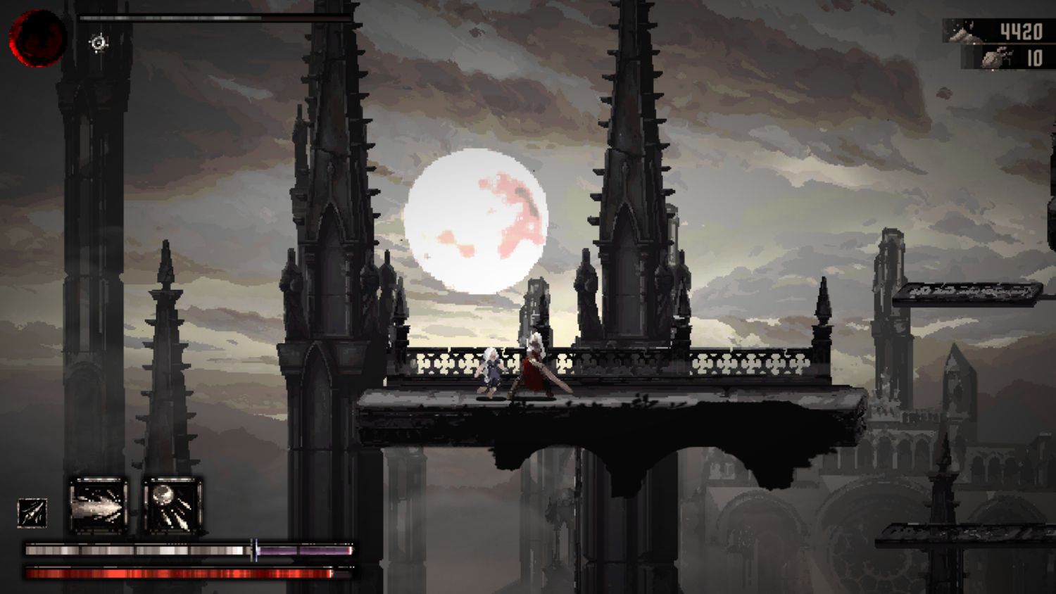 Dicho esto, el combate en cicatrices lunares es fantastico. Hay muchos tipos diferentes de enemigos a los que enfrentarse y el juego a menudo encierra al jugador en salas estilo arena, donde tiene que matar a todos los enemigos antes de poder continuar. Las batallas de ritmo rápido recompensan la habilidad y el tiempo, especialmente cuando se trata de la mecánica de parada, que resulta muy útil para aquellos que quieren arriesgarse a quedar expuestos a un contraataque. El único inconveniente es el recurrente enfado con los patrones. Todas las batallas contra jefes se ven increíbles, pero hay un problema persistente donde la mayoría de ellas tienen un elemento adicional (ya sea minions invocables o peligros aleatorios) lo que hace que la pantalla esté demasiado ocupada e introduce un elemento aleatorio no deseado en la pelea. Estas batallas contra jefes habrían sido increíbles si hubieran sido peleas uno a uno entre el jefe y Gray Irma, pero el pequeño elemento adicional del infierno de balas los derriba.