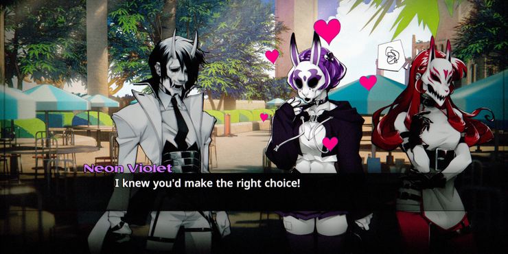 Lo primero que hace Blanco neón se destaca es su estilo artístico inspirado en el manga. Si bien cada uno de los personajes del juego se siente un poco cliché, como que White sea el protagonista vanguardista al estilo de Sasuke, la forma en que todos interactúan entre sí hace que esos cliché se sientan entrañables. Por otro lado, se compromete por completo con el diálogo de simulación de citas sin agregar mecánicas de simulación de citas, por lo que los jugadores que no tienen gusto por ese estilo encontrarán que muchos de los diálogos y las escenas son un poco excesivos.