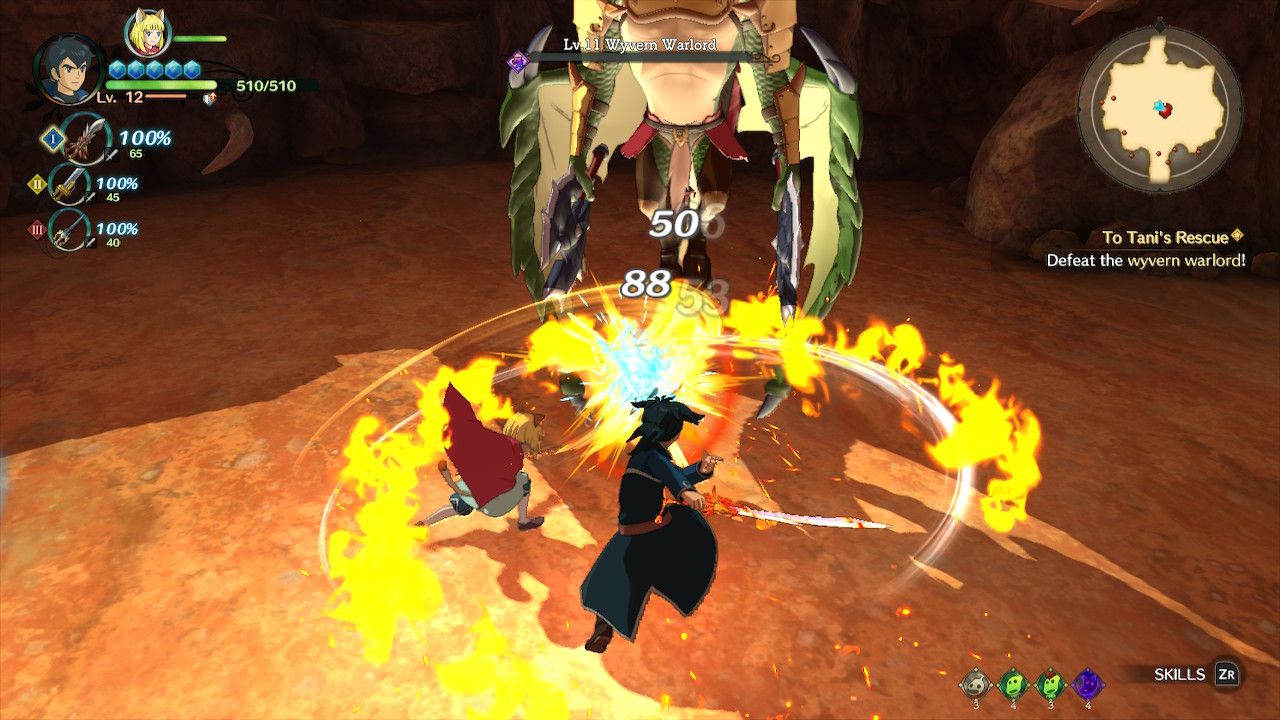 Si bien el juego es un juego de rol en el fondo, sigue muy pocas de las convenciones de juego establecidas por ese género, especialmente con sus batallas. Todo el combate tradicional se realiza mediante encuentros estilo hack-and-slash donde todo el grupo y todos los enemigos se mueven y atacan en tiempo real. Esto permite el uso de combos, movimientos especiales, bloqueos y esquivas y, en general, recompensa el juego hábil incluso si los números no están necesariamente a favor del jugador. También hay escaramuzas a mayor escala que se desarrollan en el mapa mundial, también en tiempo real, donde Evan puede usar el poder militar más amplio que ha acumulado para enfrentar amenazas de igual tamaño.