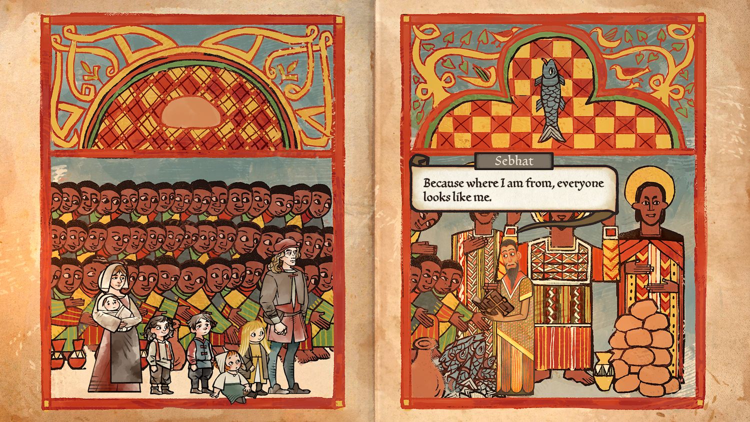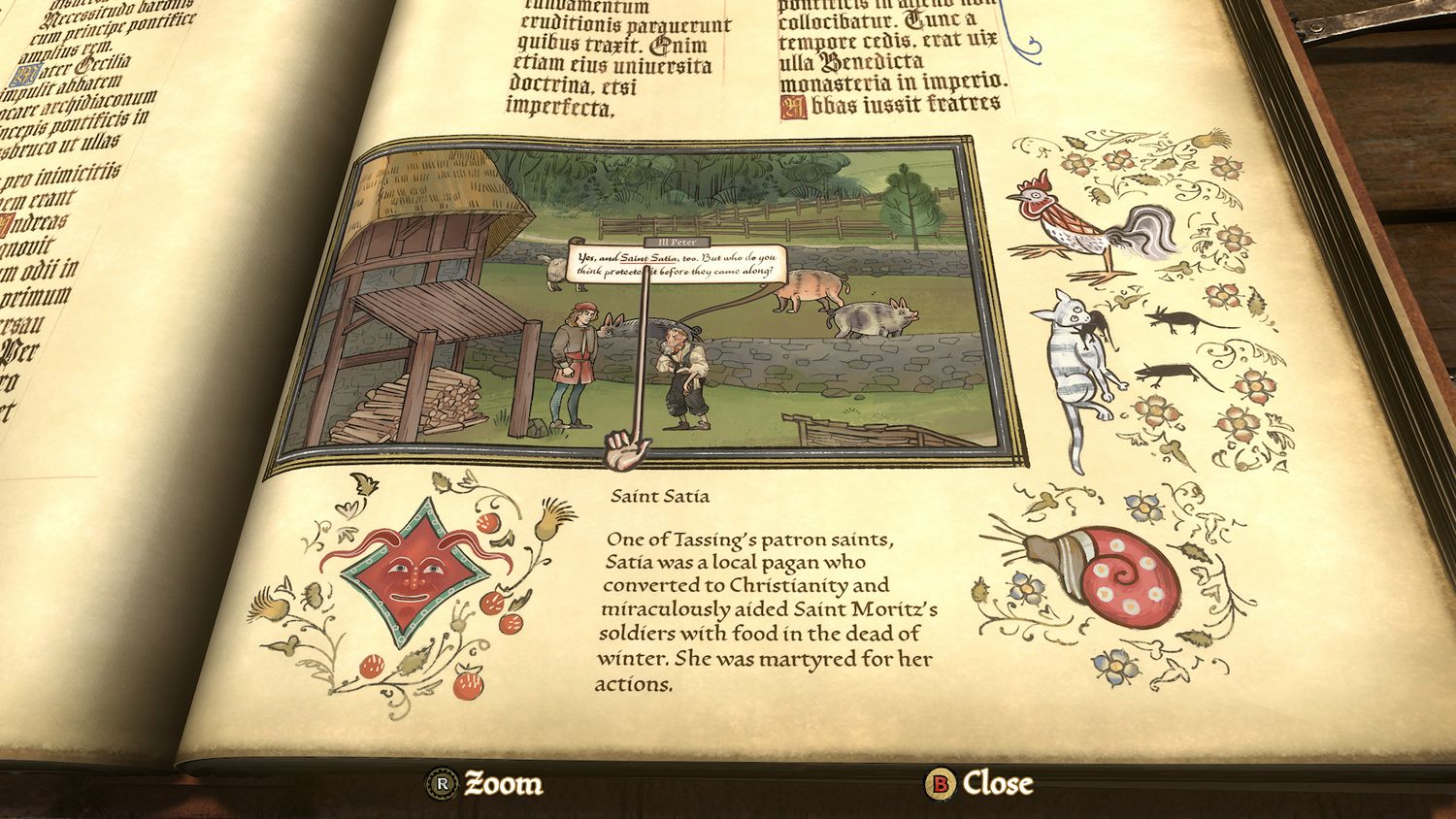 Para ser claro, Arrepentimiento es el título histórico “ligeramente ficticio” que debería ser. Los jugadores que no hayan completado recientemente una educación postsecundaria en historia probablemente querrán consultar la enciclopedia del juego con frecuencia, a la que se puede acceder con solo hacer clic en un botón en mitad de una oración cada vez que se resalta una figura o un momento particularmente importante. No es necesario, ya que se proporciona contexto para todo lo que es especialmente relevante, pero el mundo de Arrepentimiento es un placer tal que vale la pena hacer un esfuerzo adicional para exponer algunas de sus complejidades. Esto tampoco le quita nada al juego, gracias al marco más amplio de ArrepentimientoEl diseño. Todo se desarrolla como arte en un manuscrito del siglo XVI, ya sea el diálogo, el movimiento de los personajes o incluso las referencias a la enciclopedia, la última de las cuales aleja la acción para resaltar información relevante como si fuera parte de un libro más grande.