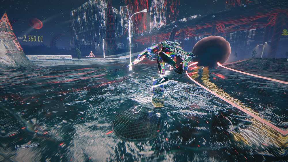 Historia del patinajeLa brillante estética alucinatoria de casi siempre es agradable a la vista y muy legible.incluso con su escenario caleidoscópico codificado por ondas de vapor (con solo el más pequeño estilo de asalto sensorial tang a la Escuadrón de crueldad). Su banda sonora es una de las mejores del año, una mezcla de nu-soul, synthwave y otras mezclas de géneros que magnetizar el skate y conectar sinérgicamente todo el paquete, especialmente durante encuentros selectos.